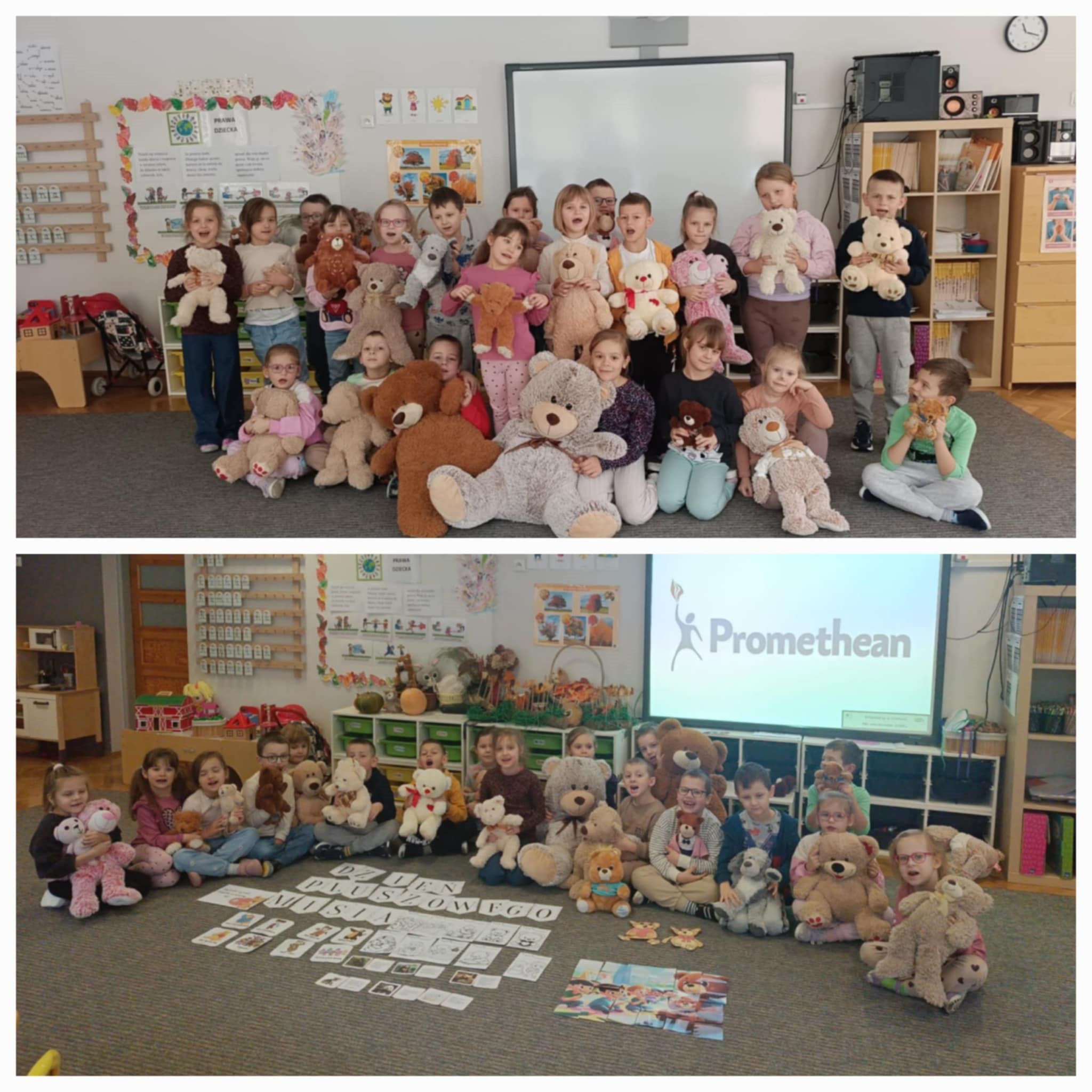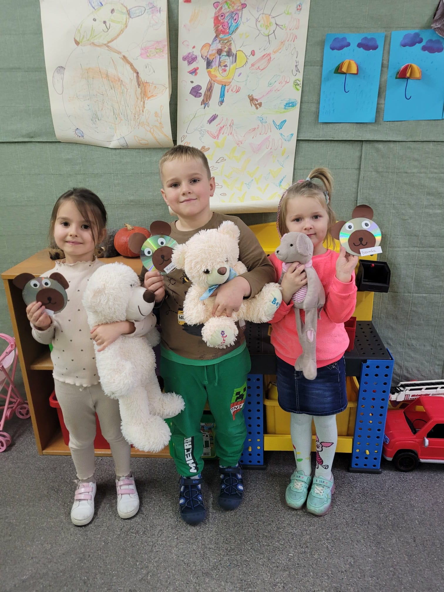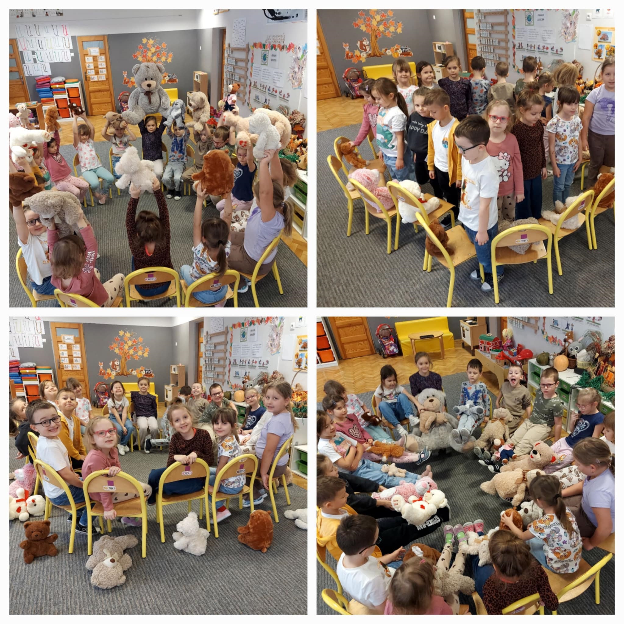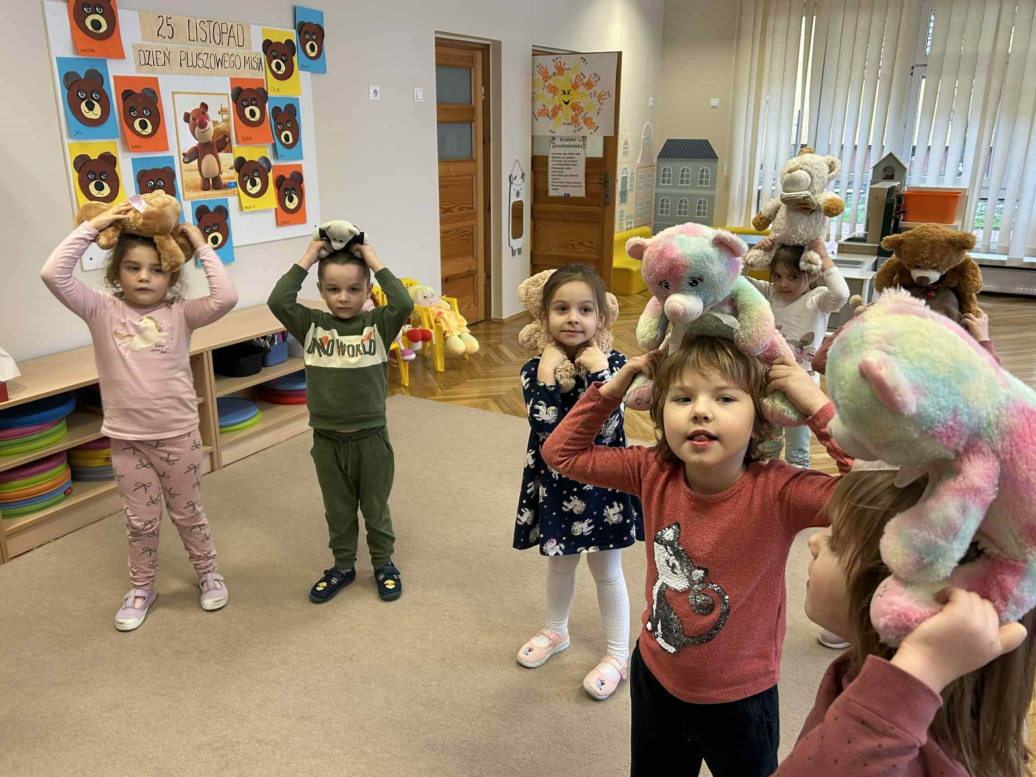 W naszym przedszkolu świętowaliśmy Dzień Pluszowego Misia. Dzieci przyniosły swoje ulubione pluszaki, brały udział w zabawach, konkursach i zajęciach plastycznych. Wspólnie śpiewaliśmy piosenki, słuchaliśmy bajek o misiach i tworzyliśmy misiowe prace. Na zakończenie każdy przedszkolak otrzymał pamiątkowy dyplom lub odznakę. To był dzień pełen radości i przytulnych chwil.
